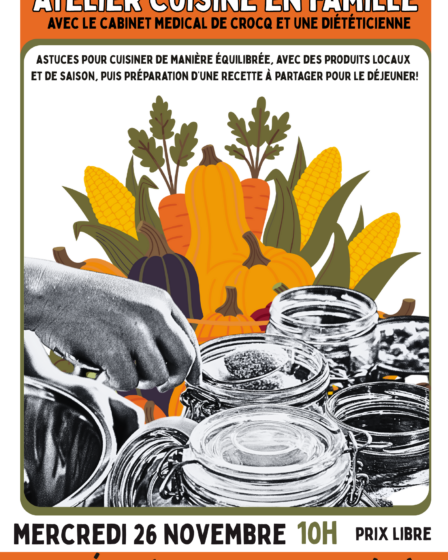 Mercredi 26 novembre à 10h Atelier cuisine en famille avec le cabinet médical de Crocq et une diététicienne Venez participer à un atelier cuisine en partenariat avec la maison de santé de Crocq et une diététicienne ! L’atelier se déroulera en deux temps : nous parlerons d’abord astuces et solutions pour cuisiner de manière équilibrée, …