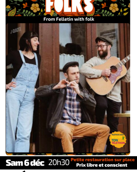 On remet ça SAMEDI 6 DÉCEMBRE (attention c’est un samedi et non un vendredi comme d’hab’ au café) pour une toute autre ambiance c’est avec le smile et la chaleur dans le cœur que nos copains de Felletin nous ambiancerons pour clôturer la journée au profit du Téléthon à Flayat « From Felletin with folk » les …