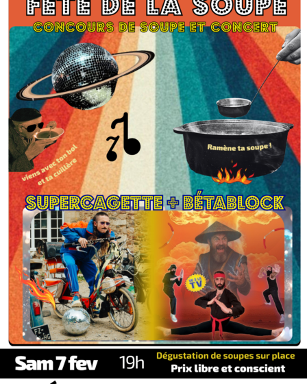 Tu aimes la soupe et tu aimes faire la fête ? Cette soirée est pour toi ! Une vieille recette de ta grand-mère ou une pure invention ? Concocte ta meilleure soupe et viens affronter de redoutables adversaires lors du concours de soupe de l’Espace et gagner la louche d’or ! Et on a dégoté …
